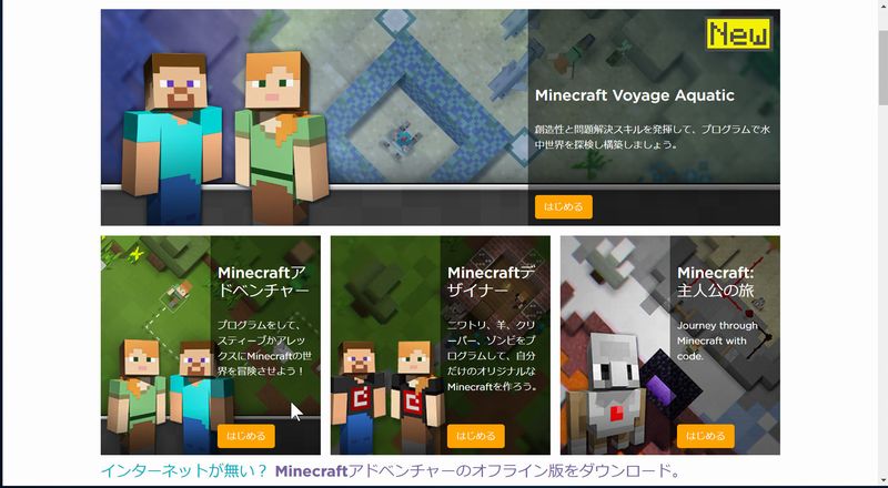 例として「Minecraft Hour of Code プログラミング入門」をやってみましょう。